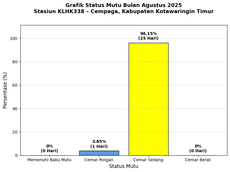 • ⚠️ 3,85% (1 hari) berada pada kategori Cemar Ringan.